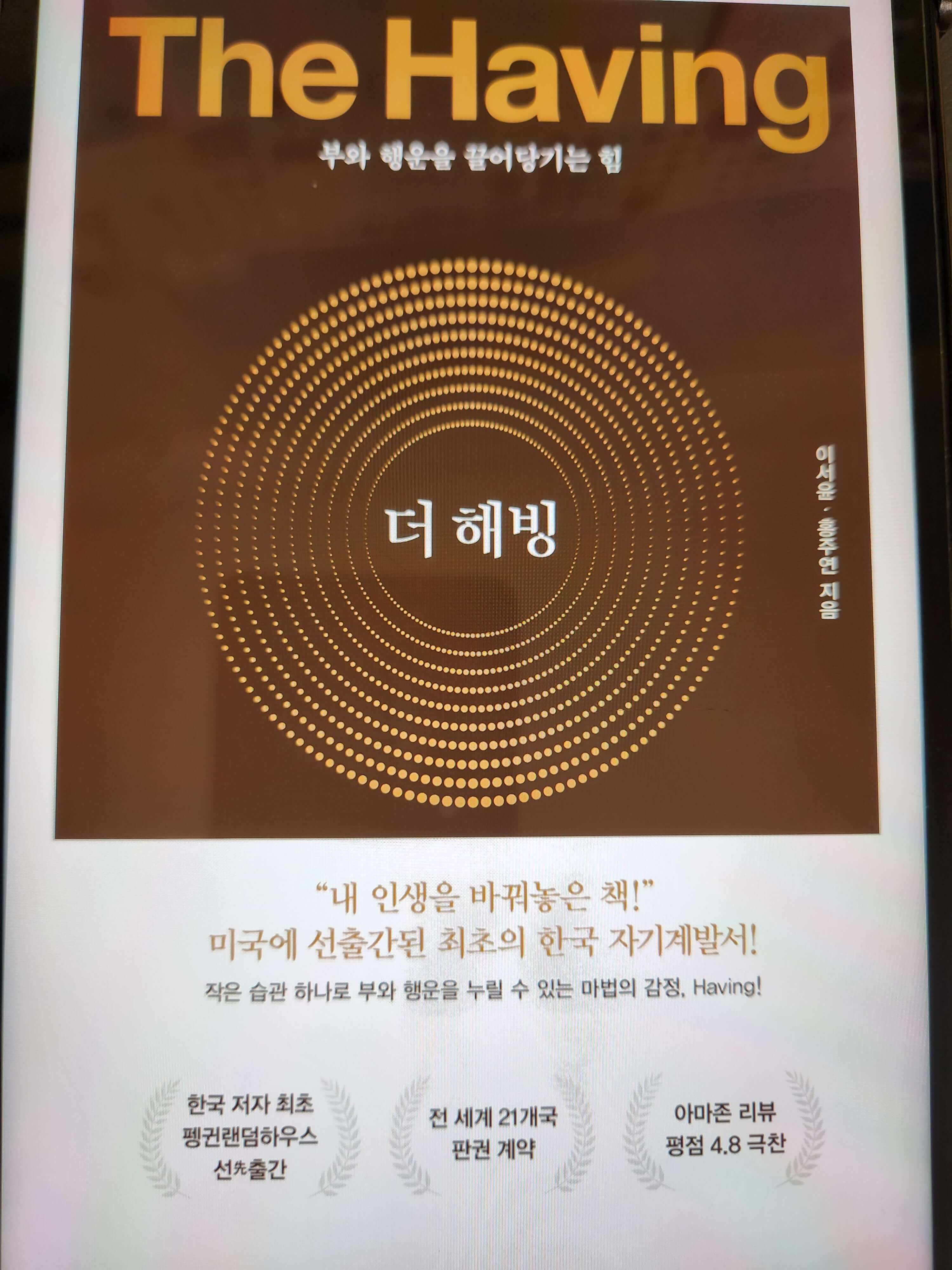 더 해빙은 2020년 4월 출간되었고 펴낸 곳은 (주)수오서재이다. '부와 행운을 끌어당기는 힘'이라는 부제를 가지고 있으며 미국에 선출간된 최초의 한국 자기 계발서이다. 이 책이 출간되고 한동안 한국에서도 베스트셀러 1위를 차지하며 화제를 모았다. 미국에서 선출간되었다는 부분에 흥미가 느껴져서 읽었던 기억이 난다. 오늘은 여러 가지 의외의 면이 많았던 이 책에 대해서 저자 소개, 주요 내용, 추천 이유에 대해서 이야기해보고자 한다.