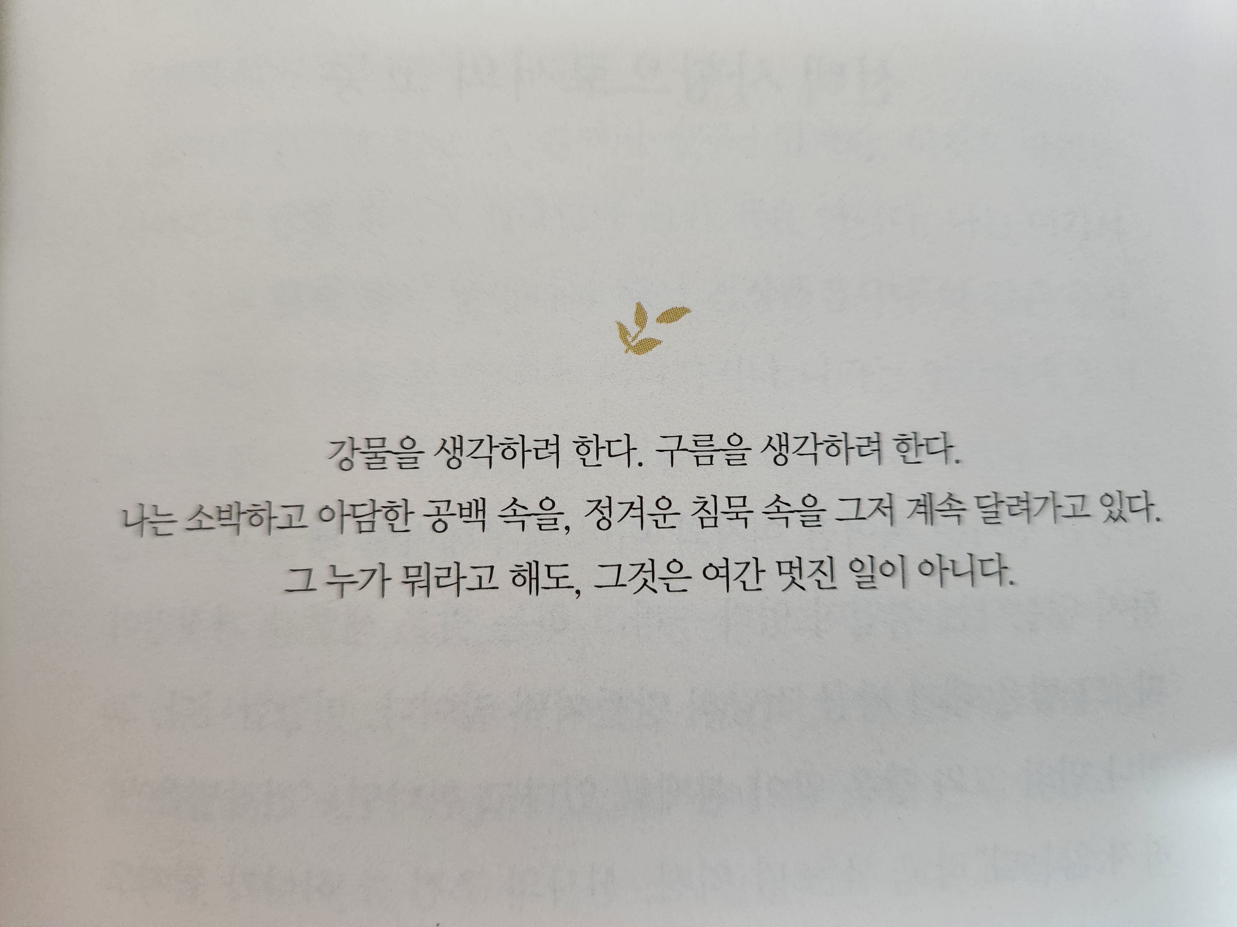 하루키는 글을 쓰는 것 만큼이나 달리는 것에도 진심인듯하다. 그가 바라는 묘비명에 작가(그리고 러너)라고 적을 정도이다. 책은 그가 어떻게 달리는 훈련을 하는지에 대해서 자세히 나와있다. 매일 10킬로 뛰는 것을 목표로 또 한 달에 뛰어야 할 거리를 정해두고 정확하게 실천을 해나간다. 때론 굉장히 과학적이고 체계적이라고 느껴질 정도이다. 그렇게 자신의 근육 하나하나를 단련하고 기록향상을 위해서 조금씩 나아간다. 서두르는 것은 없다. 한꺼번에 나아지길 바라지도 않고 핑계를 대면서 그만두지도 않는다. 하루키는 달리는 행위를 정말로 사랑하는 것 같았다. 글쓰기를 사랑하는 것처럼. 하지만 사랑한다고 해서 요란하게 그 사랑을 표현하지 않는다. 꾸준함으로 표현할 뿐이다. 그 꾸준함이 오히려 감동을 준다. 그는 그것을 이렇게 표현했다. '적어도 최후까지 걷지는 않았다.' 이것이 그가 지키는 유일한 철칙이다. 그는 글쓰기도, 달리기도, 인생도 그렇게 최후까지 걷지는 말자는 생각으로 묵묵히 하루하루를 달려 나간다. 매일 같은 일상을 반복한다는 것이 생각보다 쉽지 않다는 것을 아는 입장에서 그의 이런 성실함은 닮고 싶은 삶의 자세이기도 하다.
